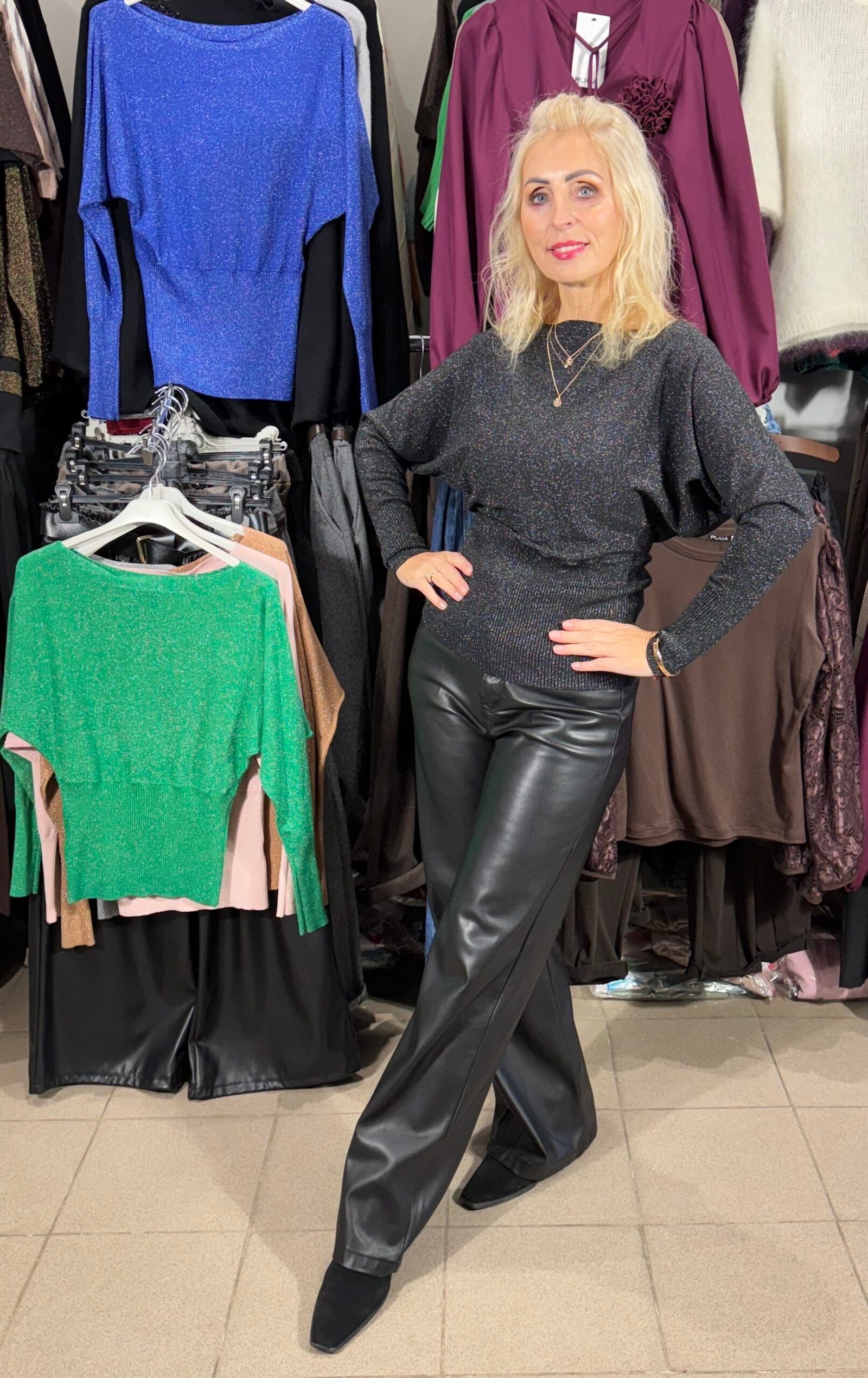 Blizgi Palaidinė Su Liureksu Juoda