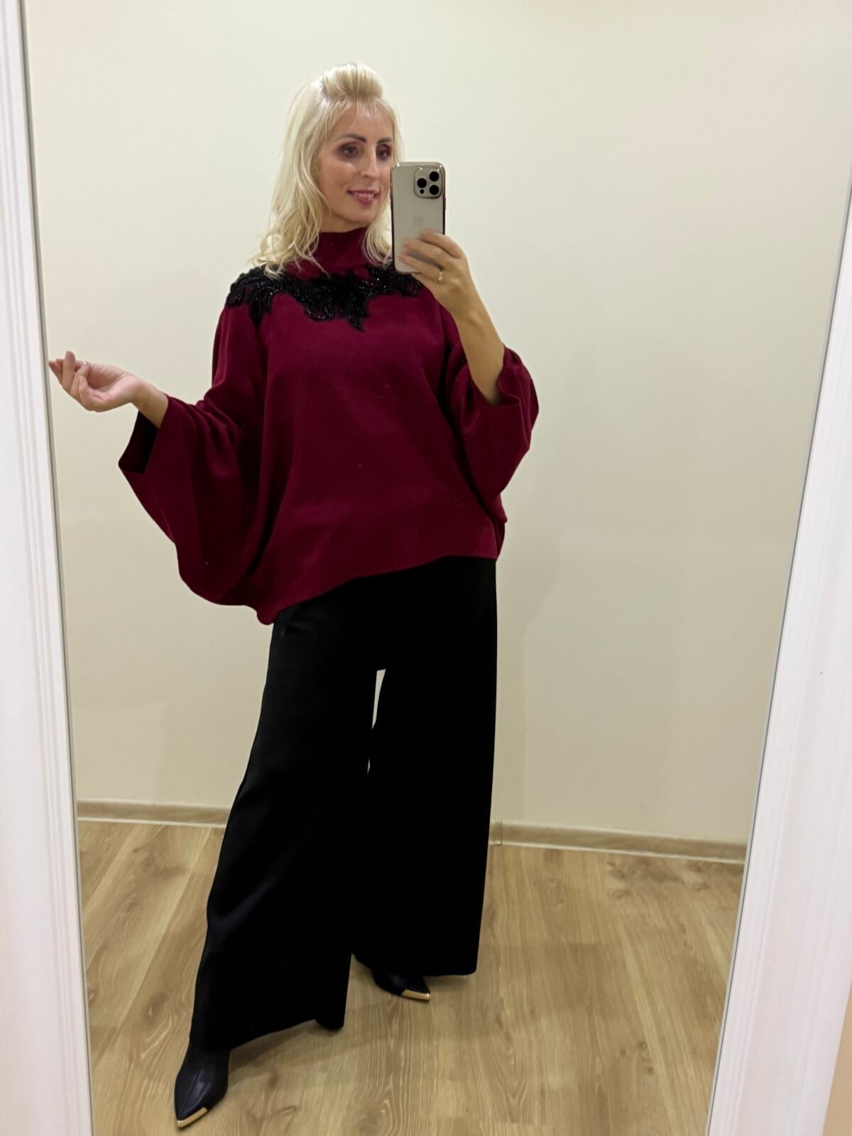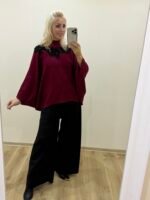 Didesnio Dydžio Prabangus Megztukas Bordo