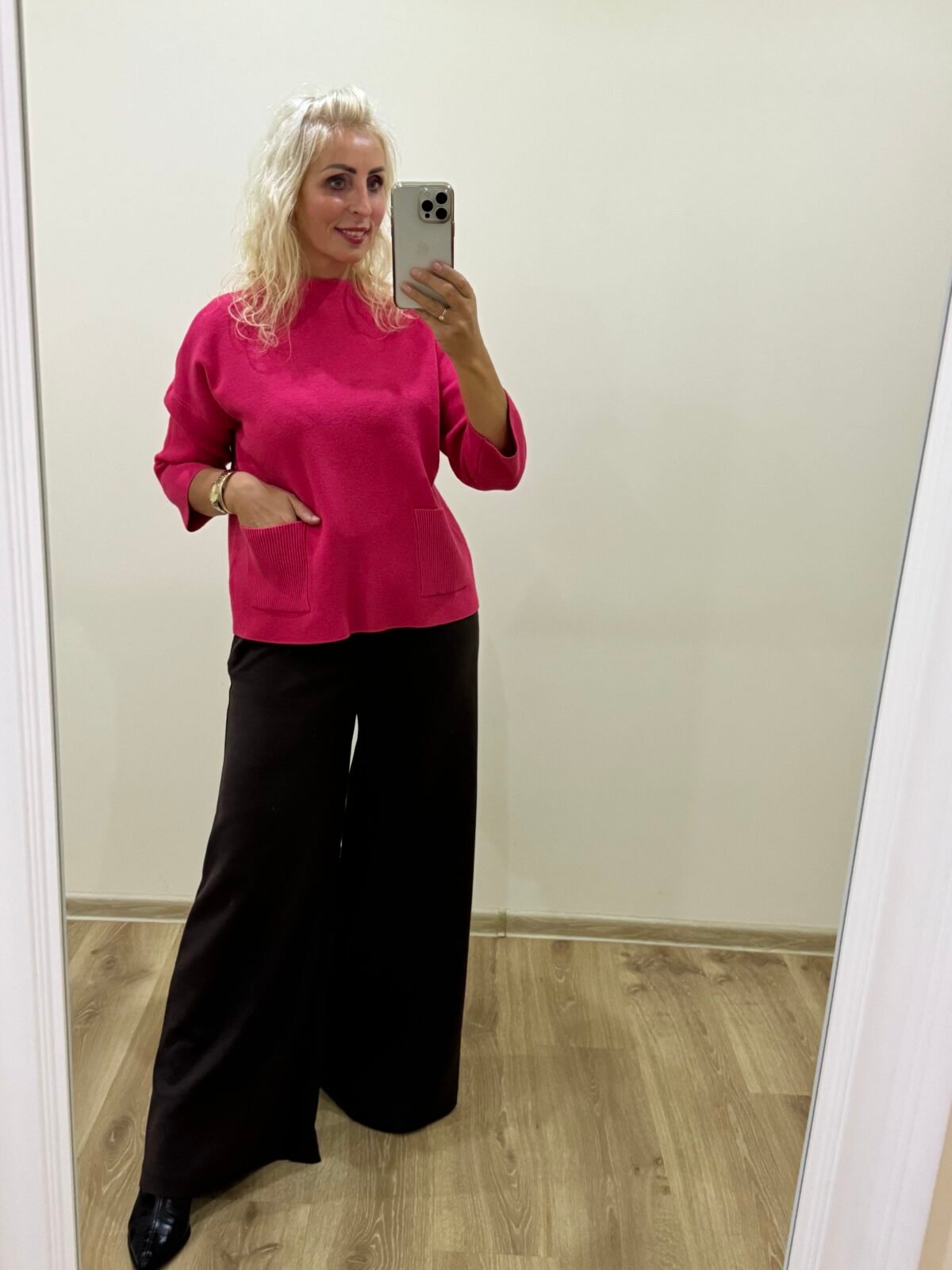 Itališkas Koralinis Megztukas Su Kišenėmis