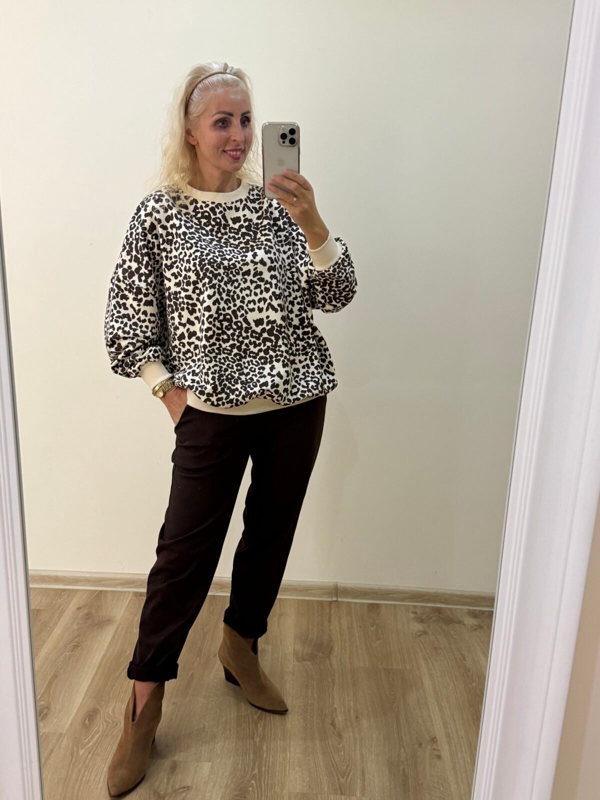 Kilpinio Trikotažo Leopardo Rašto Kreminis Džemperis