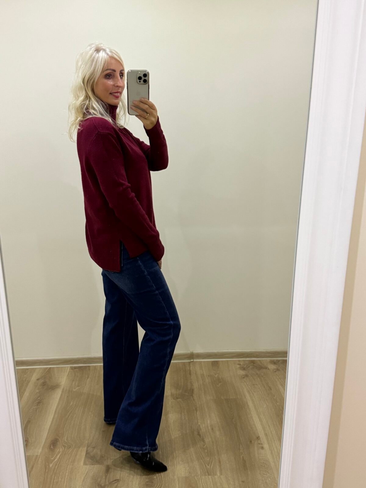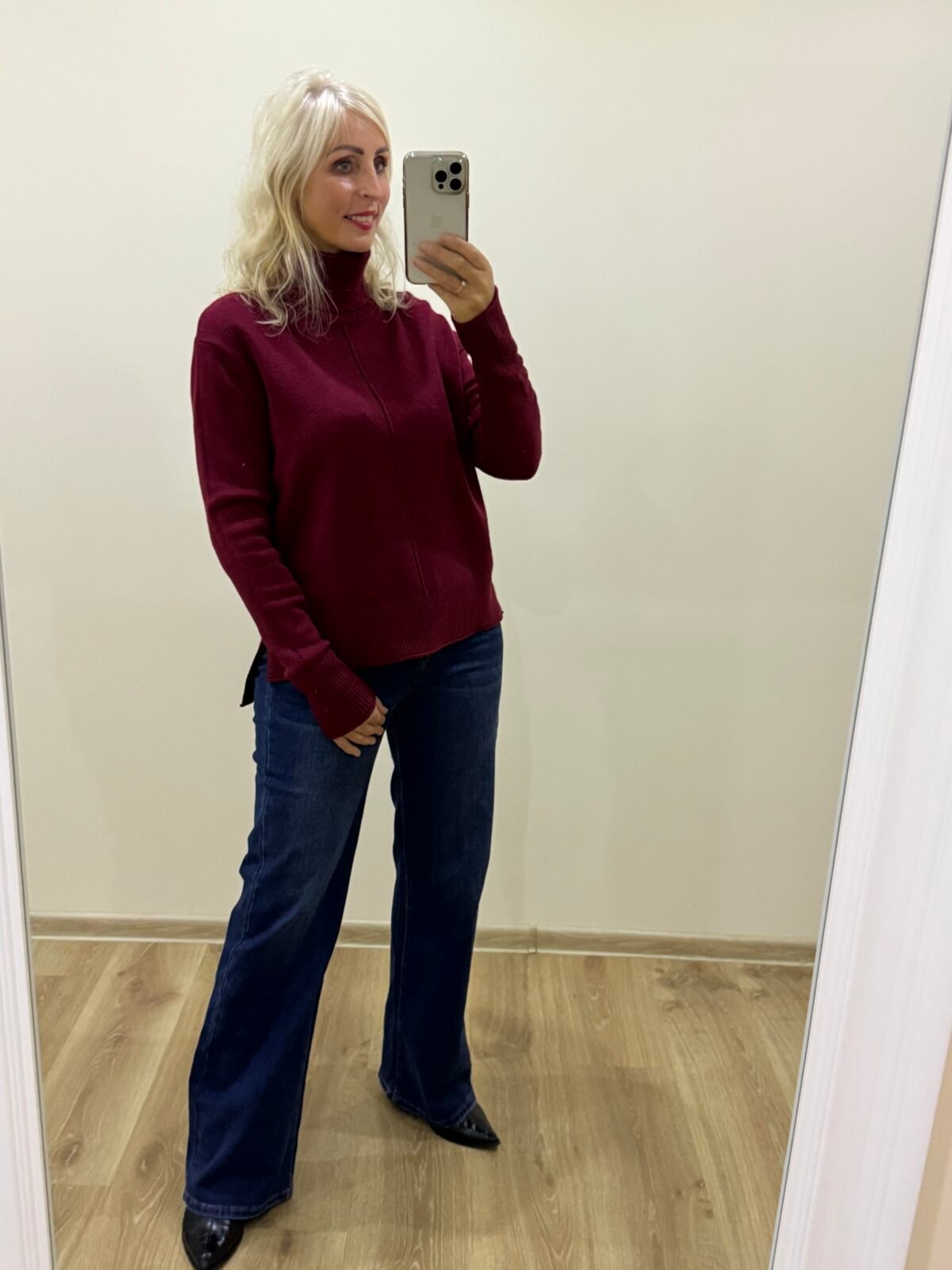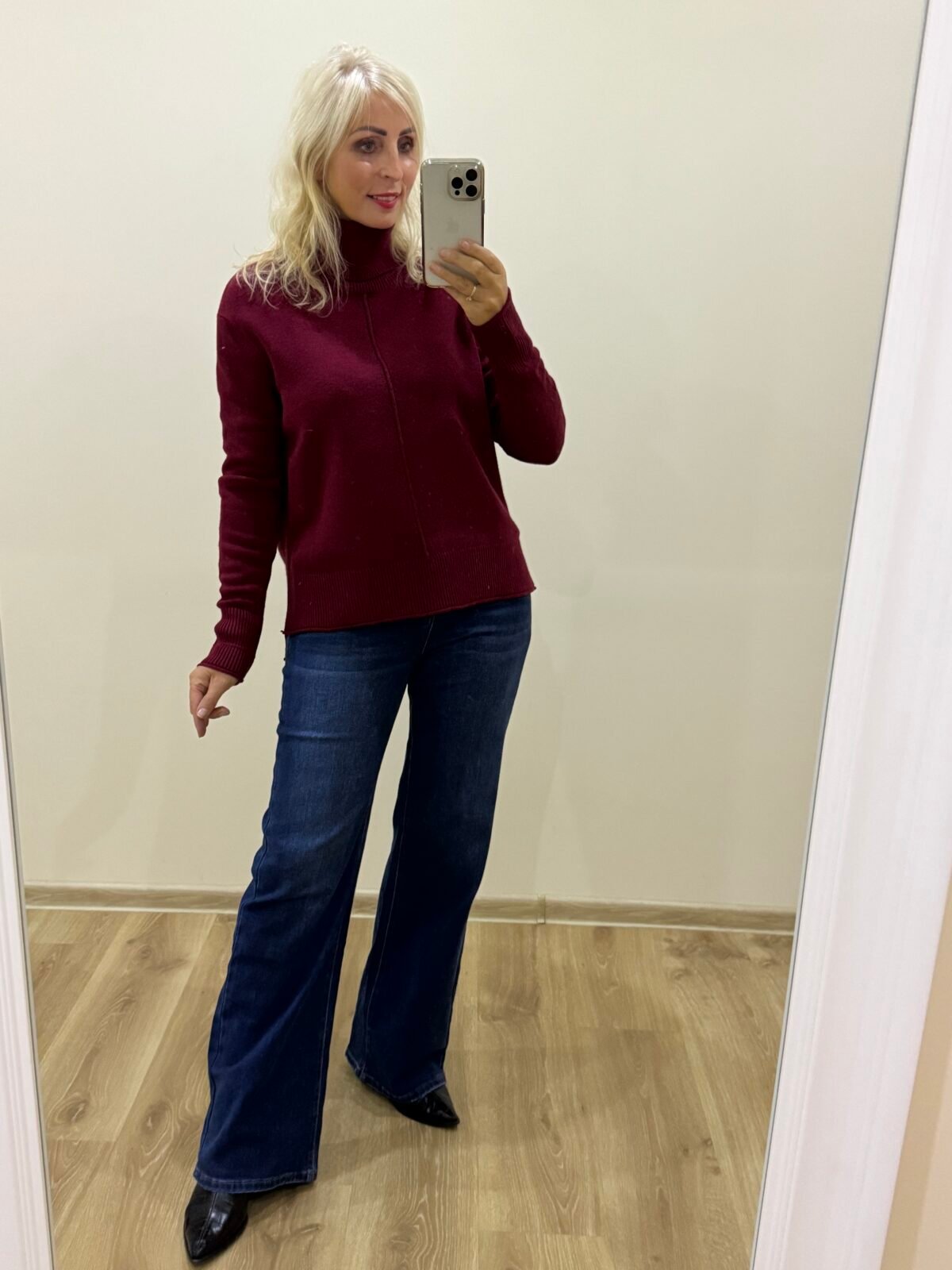 Šiltas Bordo Megztukas Su Skeltuku