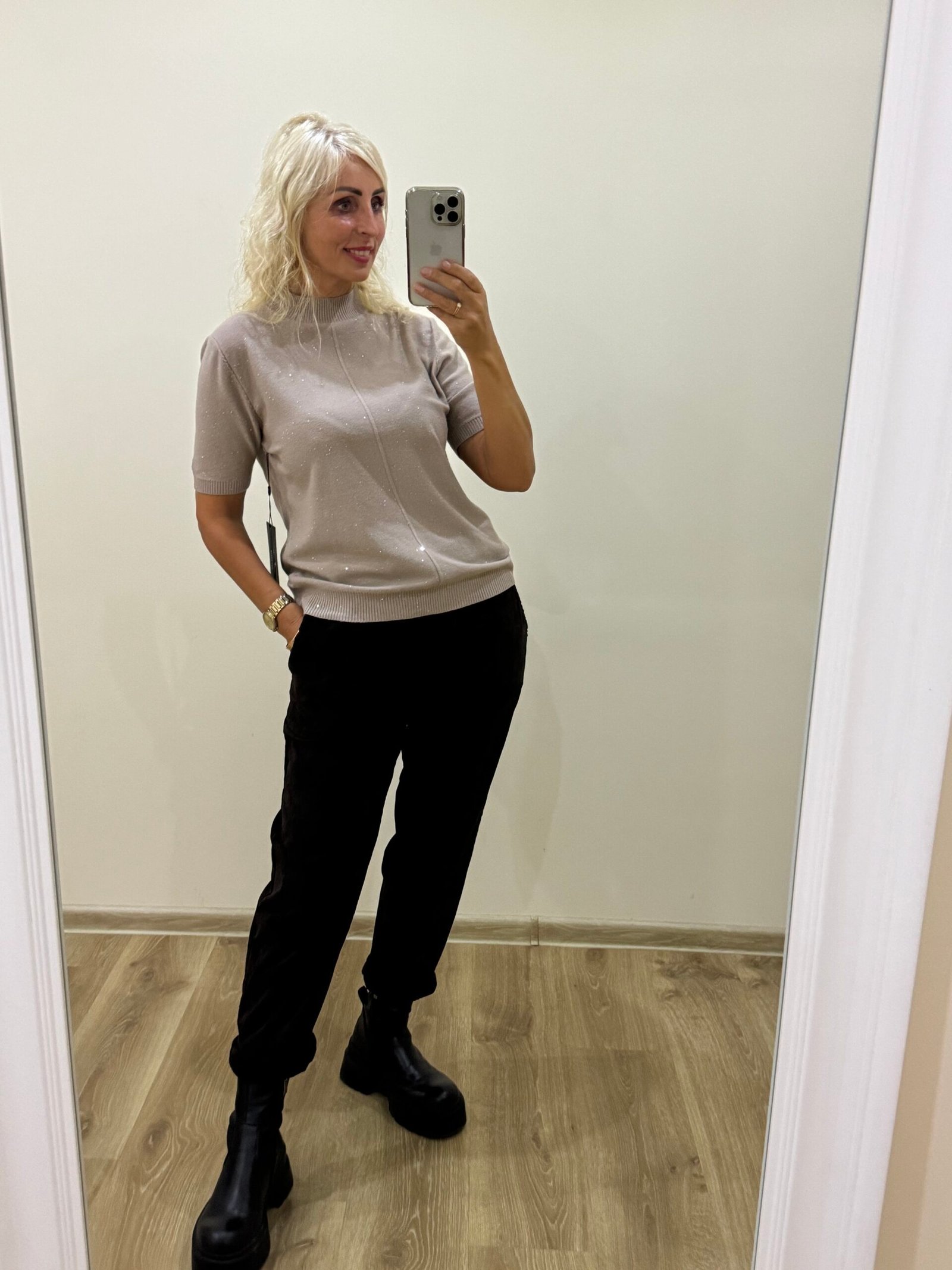 Smėlinis Kašmyrinis Megztukas Su Blizgučiu