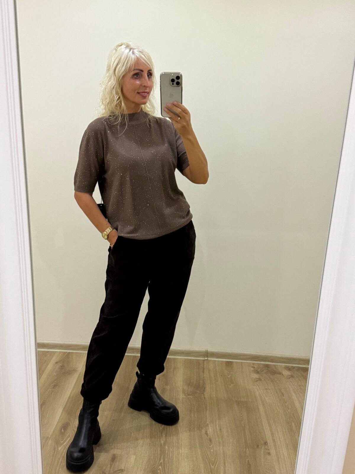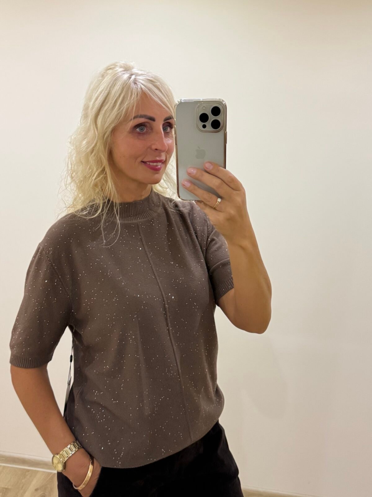 Šokoladinis Kašmyrinis Megztukas Su Blizgučiu